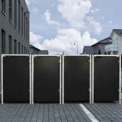 Cache-poubelle 4 Compartiments Müllbox En Aluminium Noir 4x240L – HIDE