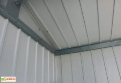 L’abri de jardin en acier galvanisé est recouvert d’une peinture gris clair, RAL 9006. L’acier est galvanisé à chaud, et offre une excellente résistance face à la corrosion, la galvanisation à chaud étant plus efficace que la galvanisation classique. Il ne demande ainsi aucun entretien et garde le même aspect pendant longtemps.
