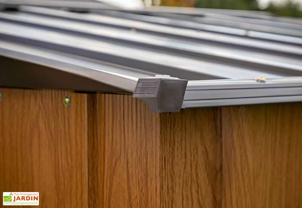 Cet abri de jardin Spacemaker offre un espace intérieur de 4 m² que vous pourrez utiliser pour ranger du matériel de jardinage et des outils ou pour placer des vélos à l’abri des intempéries, par exemple. Il est entièrement fabriqué en acier galvanisé mais profite d’une finition imitation bois qui facilitera son intégration dans votre jardin. Solide, insensible à la rouille et résistant face aux intempéries, l’acier galvanisé est un matériau idéal pour l’extérieur qui ne demande par ailleurs aucun traitement ou entretien comme cela serait le cas avec un cabanon en bois.