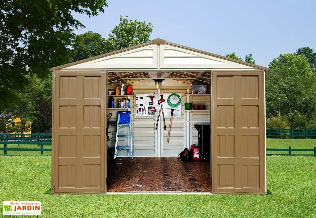 L’abri de jardin est livré en kit avec une notice de montage détaillée pas à pas. L’installation est facile et rapide à deux personnes.
