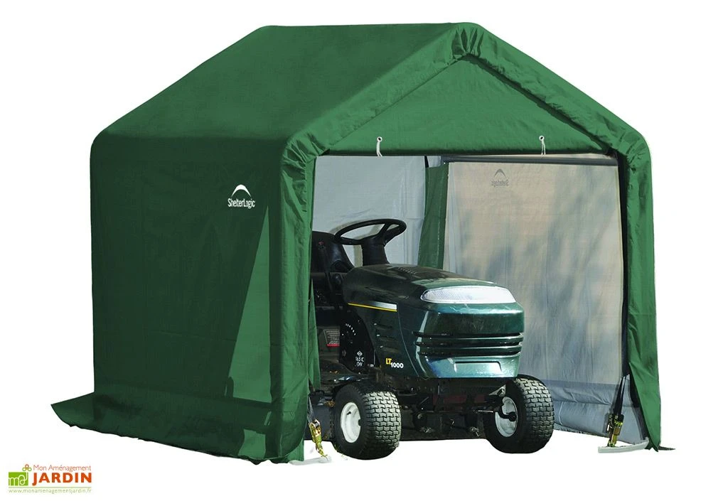 Cet abri en toile Shelter Logic se monte aussi vite qu’il se démonte grâce à sa structure tubulaire en acier. Cette structure, de 35 mm de diamètre, est couverte d’un revêtement pour une protection maximale contre la corrosion. La structure est recouverte d’une bâche parfaitement étanche en polyéthylène de 210 gr/m². Cette bâche verte se fond aisément dans le jardin et elle est protégée contre les UV.