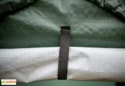 L’abri de jardin en toile de chez Habrita est constitué d’une structure robuste en tubes d’acier époxy de diamètre 38 mm et d’une bâche renforcée de 3 couches de polyéthylène. La toile est à la fois étanche et indéchirable et a une résistance de 195 g/m². L’extérieur de la toile est de coloris vert foncé afin de s’intégrer parfaitement au jardin, et l’intérieur blanc afin d’optimiser la luminosité.