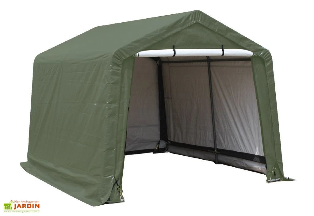 L’abri en toile permet de stocker aisément votre matériel d’extérieur (tondeuse autoportée, gros outils de jardin, brouette, moto, quad, bois de chauffage, etc.) tout en le protégeant. La tonnelle est simple et rapide à monter grâce à son système de clipsage. Le kit d’ancrage pour fixation au sol est inclus.