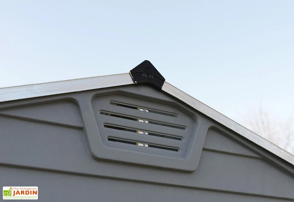 L’abri de jardin de chez Palram-Canopia séduit par son design contemporain, sa solidité à toute épreuve et sa grande résistance aux agressions extérieures. En effet, la cabane est composée de polycarbonate et d’aluminium, des matériaux qui ne moisissent pas, qui ne rouille pas et qui ne se font pas dévorer par les insectes. La jolie peinture grise qui le recouvre ne craint pas les UV, ne se décolore pas et ne s’écaille pas.