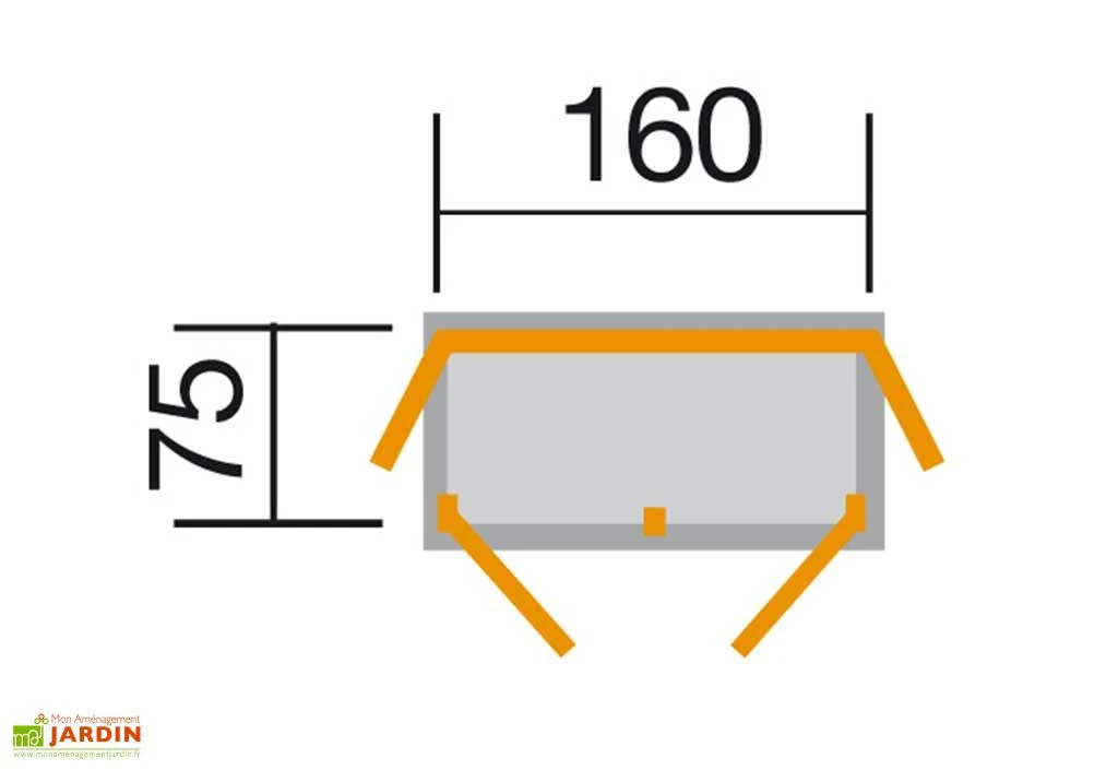 Livrée en kit, cette armoire de rangement d’extérieur devra être montée par vos soins (notice détaillée et accessoires de montage inclus). Elle est fabriquée en épicéa et ses parois de 14 mm d’épaisseur supportent une toiture plate en OSB revêtue d’une membrane auto-adhésive chargée d’assurer sa bonne étanchéité. La légère inclinaison de ce toit permet par ailleurs de garantir le bon écoulement des eaux pluviales. Un plancher de 18 mm d’épaisseur est également inclus.