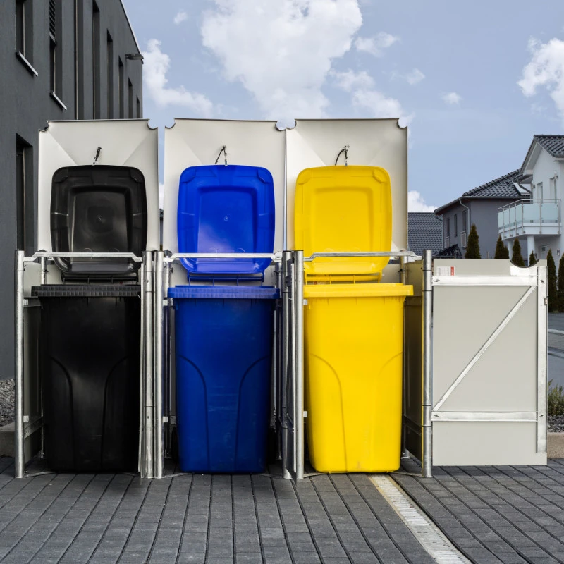 Avec ses 3 compartiments, le cache-poubelle Hide vous permettra de pratiquer un tri sélectif en un simple geste. Réalisé avec des matériaux de première qualité, ce cache-poubelle accueille 3 conteneurs à déchets d’un volume de 140L chacun. Le cadre est en acier galvanisé à chaud et les parois sont réalisées en aluminium composite, pour une durabilité et une solidité inégalées.