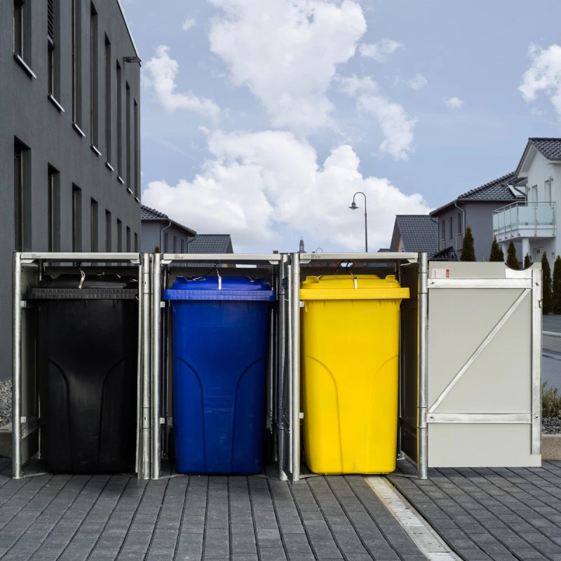 L’avis du spécialiste sur la cache-poubelle 3 compartiments Müllbox en aluminium noir 3x240L – HIDE