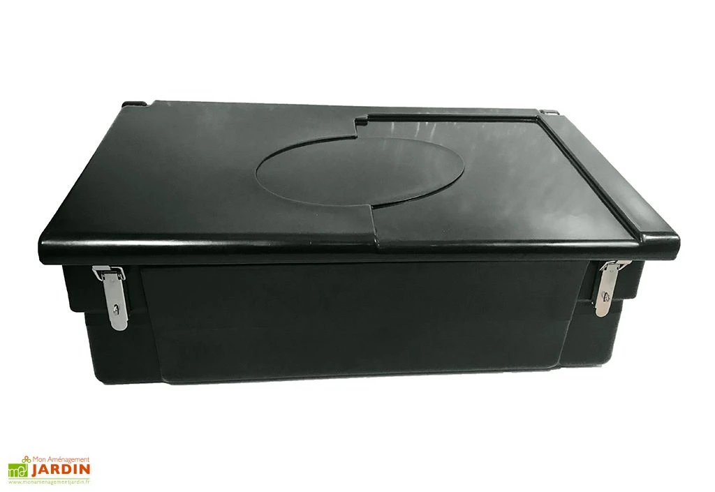 Des clips fixés en dessous du couvercle offrent un espace de rangement supplémentaire pour y insérer un petit outil comme une pelle ou un râteau.