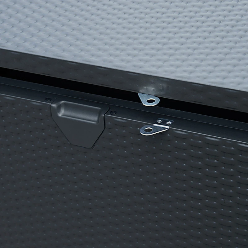 Ce coffre en métal robuste ne demande aucun entretien est conçu pour une utilisation durable. Ce coffre aux dimensions de 132x70x62cm a une capacité de 509L et est entièrement imperméable. Il présente un aspect tressé et s’intègrera harmonieusement dans tout type décoratif, sa couleur gris anthracite s’accorde avec une large gamme de tonalités.