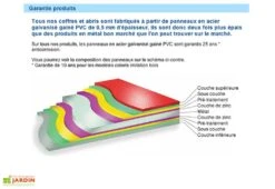 Le coffre de jardin est livré en kit. Une notice de montage est livrée avec le coffre. La garantie est de 25 ans contre la corrosion.