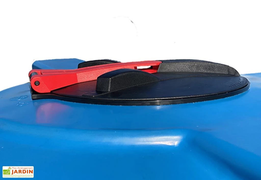 Très bien pensée, cette cuve de stockage d’eau s’est vue dotée d’un raccord rapide à embrayage (embout mâle fileté G1 ¼) équipé d’un joint en EDPM alimentaire, pour une étanchéité optimale, et d’un trou pour anneau de levage chargé de simplifier son installation et son déplacement. Notez enfin la présence d’un couvercle basculant à 180° pourvu d’un trou d’homme de 43,8 cm de diamètre, ce qui vous permettra de nettoyer facilement l’intérieur de la citerne.