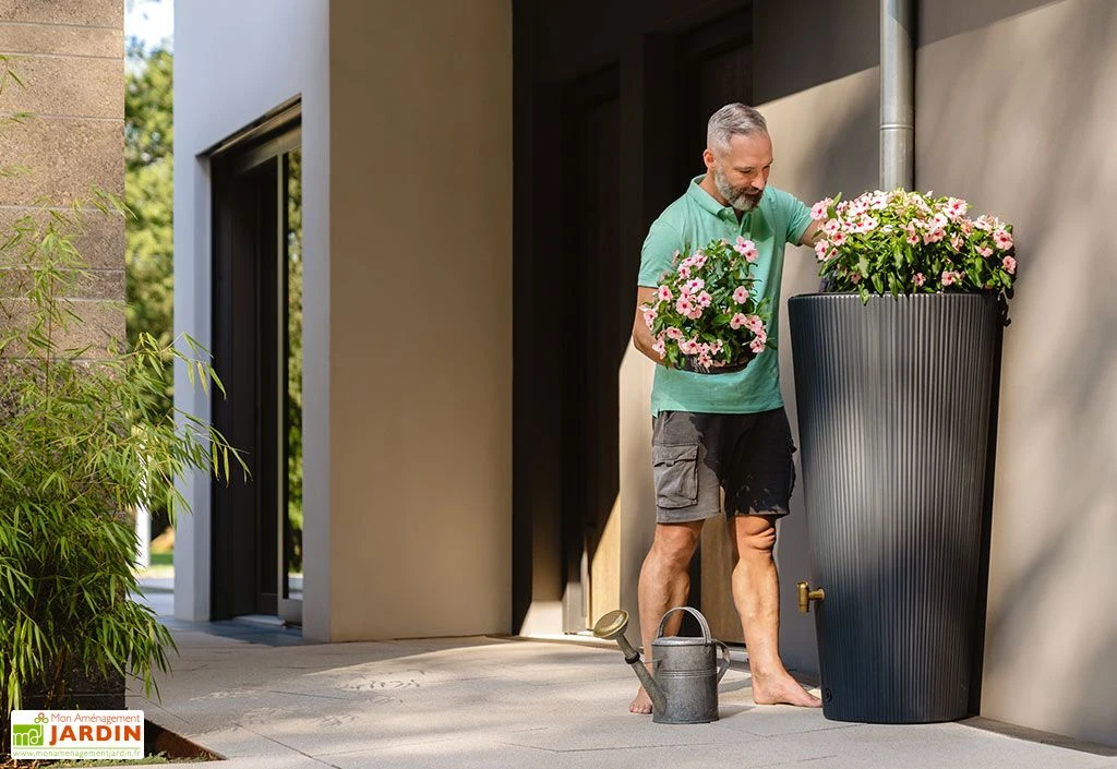 Cette cuve à eau avec bac à plantes intégré est un excellent choix pour la récupération de l’eau de pluie à partir d’une descente de gouttière pour l’arrosage ou le nettoyage.