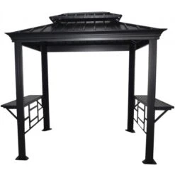 Produit de haute qualité, ce gazebo de 5,23m² est garanti 10 ans grâce à son traitement antirouille et sa structure robuste et solide en aluminium. Les sections des poteaux sont de 12x12cm. Le double toit de type pagode est en acier galvanisé et assurera une bonne ventilation et une évacuation parfaite des fumées grasses.