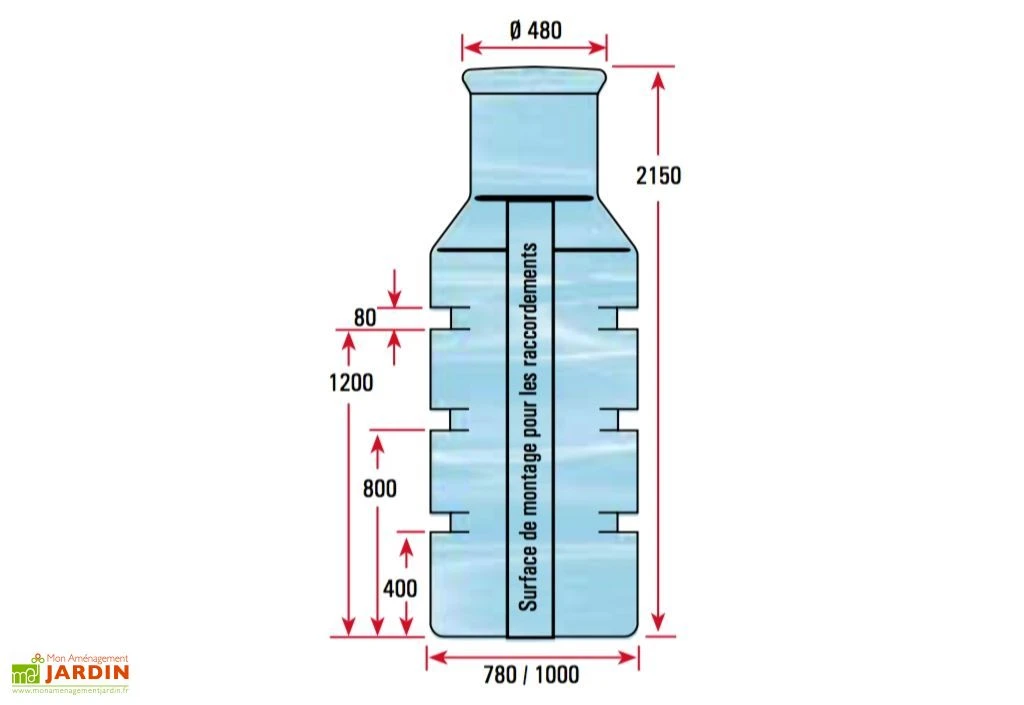 Le puits à enterrer GreenLife est en polyéthylène, un matériau solide, traité contre les UV et léger, qui permet une manipulation facile de la cuve. Il possède une contenance de 900 litres et mesure 100 cm de longueur pour 78 cm de largeur et 215 cm de hauteur.