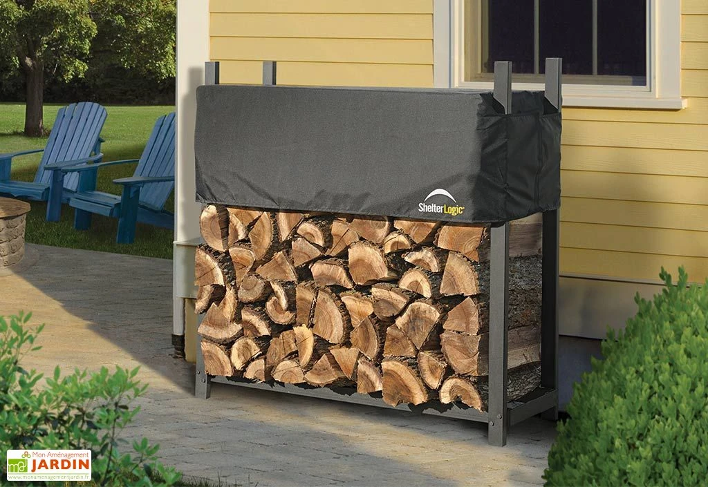Le range-bûche dispose de pieds qui permettent de surélever légèrement le bûcher et ainsi éviter tout contact entre le sol et le bois. La forme du cadre permet également l’aération du bois évitant ainsi l’humidité qui risquerait de faire moisir le bois. La protection du bois est également assurée par une bâche en polyester 300D qui s’ajuste parfaitement sur la structure.