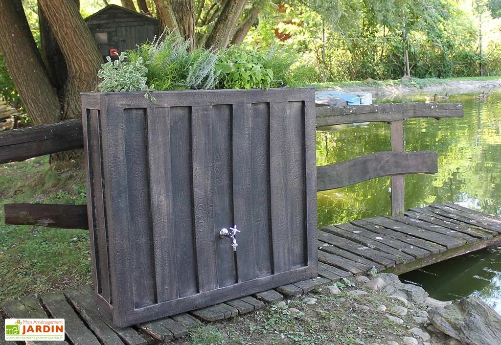 Ce récupérateur d’eau 4 en 1 sert également de décoration, de jardinière ou encore de bassin d’eau. Il mesure 120 x 40 x 110 cm ( longueur x profondeur x hauteur) et résiste aux UV.
