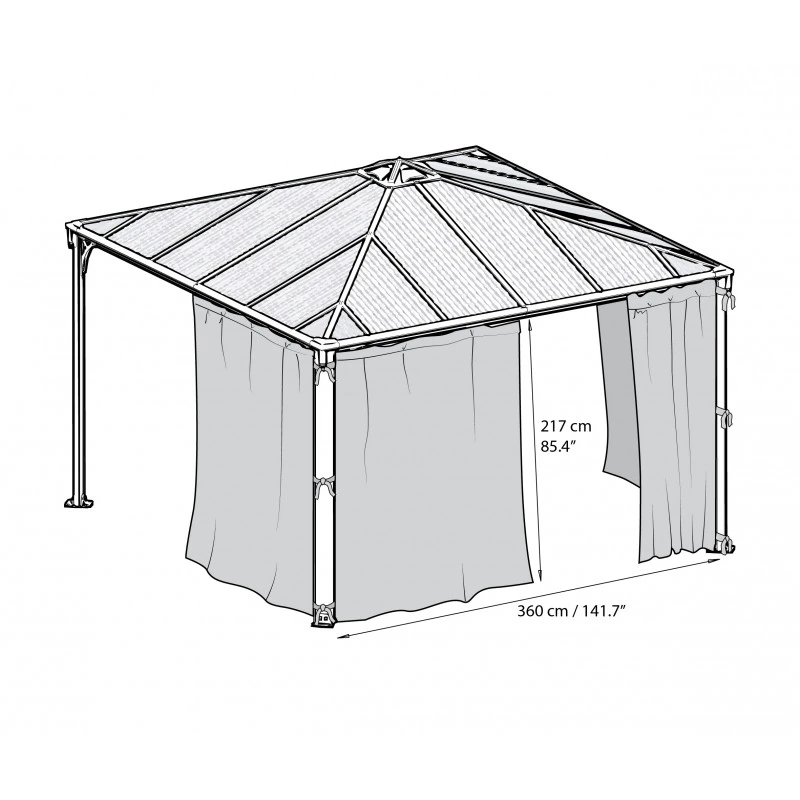 L’avis du spécialiste sur le set de 4 rideaux pour tonnelle 3x3m et 3,6×3,6m en alu gris Palram – Canopia