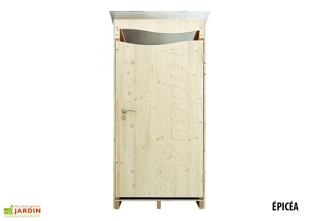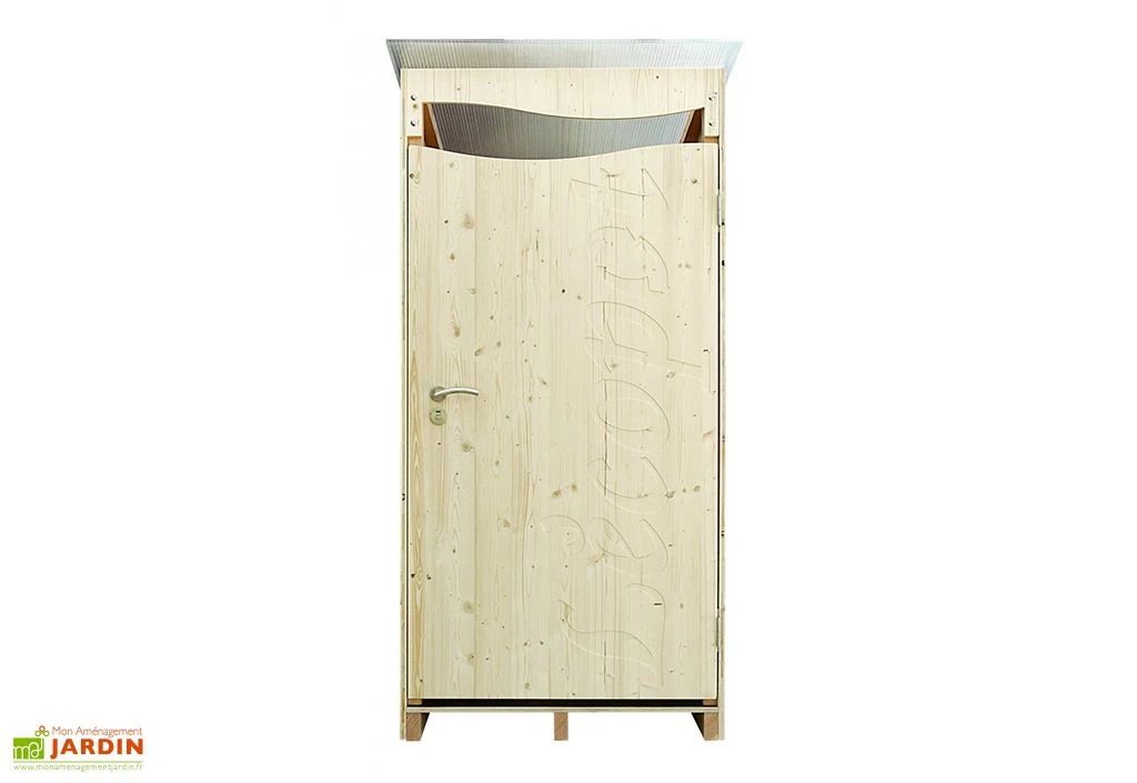 Cette cabine pour toilettes sèches équipée dispose de dimensions de 120 x 105 x 215 cm et s’intégrera parfaitement dans votre jardin ou verger. L’habillage de ce cabinet est en bois douglas ou épicéa selon votre préférence et est disponible en version brute, à vernir soi-même, ou en version lasurée prête à l’emploi.